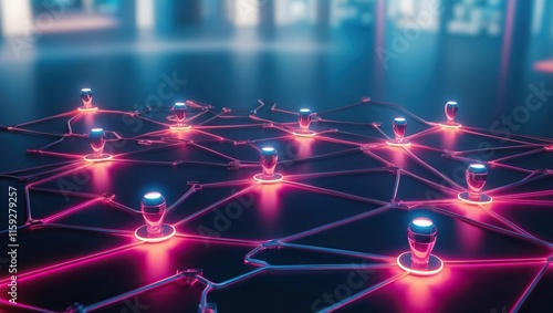 Futuristic digital network visualization with glowing nodes connected by lines, representing advanced communication and technology concepts