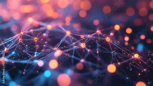 Futuristic Digital Network Visualizing Data Connections and Information Flow with Glowing Nodes and a Complex Web, Suitable for AI, Blockchain, and Technology Development Themes