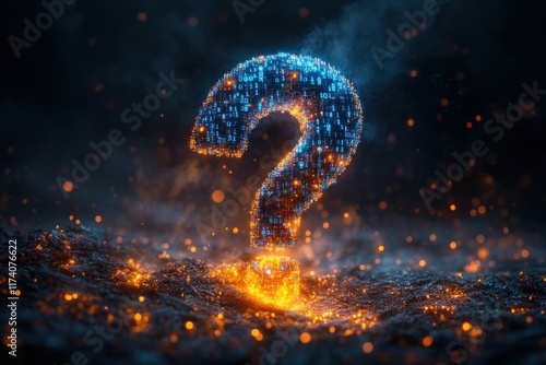 Futuristic Digital Question Mark with Glowing Binary Code in AI and Natural Language Processing Systems
