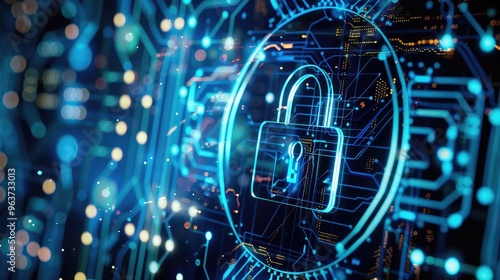 Futuristic Digital Security Interface with Lock Symbol and Circuit Design