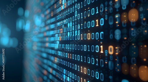 Futuristic digital technology backdrop with abstract binary code and data flow