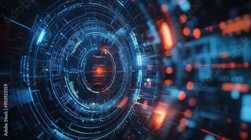 Futuristic Digital Technology Backdrop with Glowing Circular Patterns
