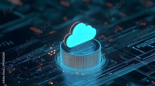 Futuristic digital technology representation of cloud computing, artificial intelligence, and secure data storage.