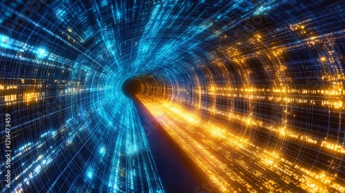 Futuristic Digital Tunnel. Abstract Glowing Passage of Binary Code and Data Flow in Cyberspace