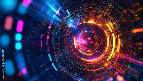 Futuristic digital tunnel, swirling data, abstract background, tech presentation