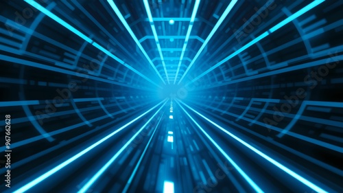 Futuristic Digital Tunnel with Glowing Leading Lines