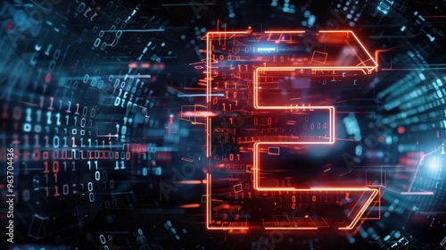 Futuristic E logo featuring integrated light patterns and a tech-inspired background