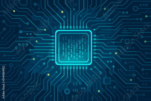 Futuristic Electronic Circuit Board with Glowing CPU Processor Core. Digital Data Processing, Modern Technology Microchip, Network Connection, AI Concept Vector Abstract Background.