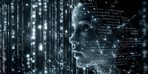 Futuristic Female Cyborg Interface with Digital Data Stream