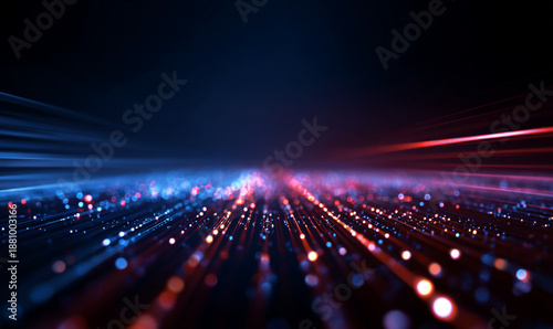 Futuristic fiber optic light background with red and blue data flow
