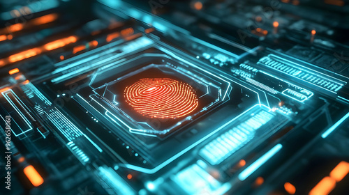 Futuristic Fingerprint Security System Abstract 3D Illustration