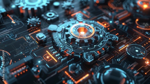 Futuristic Gears and Holographic Interfaces Depicting Advanced Digital Technology