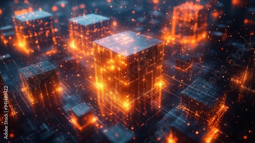 Futuristic Glowing Cubes in Digital Space Generative AI