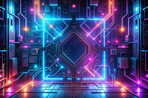 Futuristic Glowing Data Panels Cyberpunk Background - Digital Art