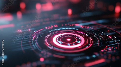 Futuristic glowing HUD interface with clock.