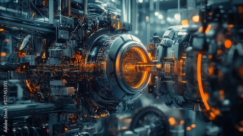 Futuristic glowing machine in a high-tech environment