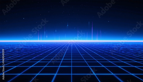 Futuristic Grid Landscape Neon Blue Digital Cyberspace Background