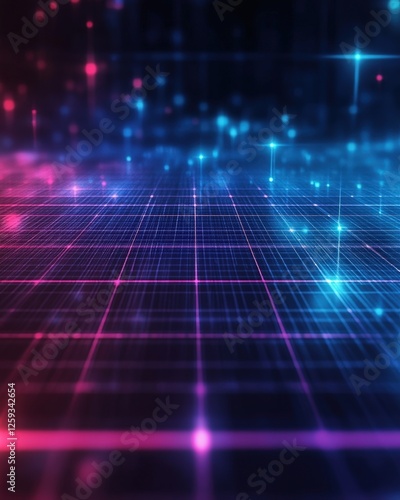 Futuristic grid patterns with glowing elements and depth