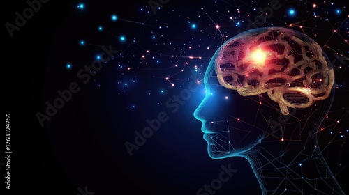 Futuristic head with a glowing cyber brain, representing advanced AI-powered cognition.