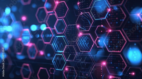 Futuristic Hexagonal Geometric Patterns with Neon Navy Elements