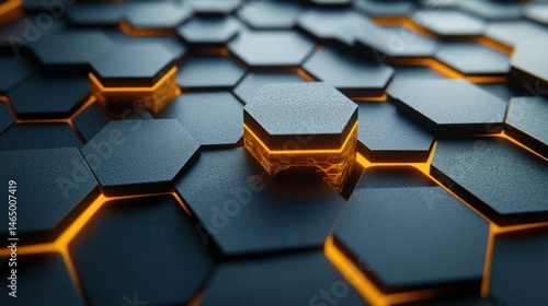 Futuristic Hexagonal Grid with Glowing Orange Light