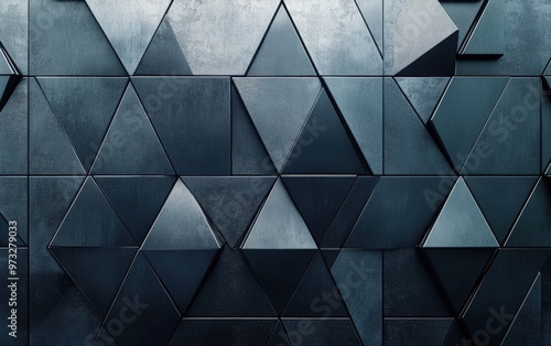 Futuristic, High Tech, colored background, with a triangular block structure. Wall texture with a 3D triangle tile pattern. 3D render