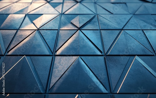 Futuristic, High Tech, colored background, with a triangular block structure. Wall texture with a 3D triangle tile pattern. 3D render