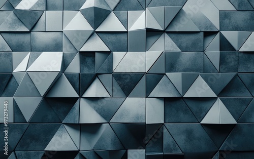 Futuristic, High Tech, colored background, with a triangular block structure. Wall texture with a 3D triangle tile pattern. 3D render