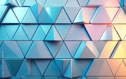 Futuristic, High Tech, colored background, with a triangular block structure. Wall texture with a 3D triangle tile pattern. 3D render