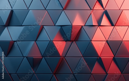 Futuristic, High Tech, colored background, with a triangular block structure. Wall texture with a 3D triangle tile pattern. 3D render