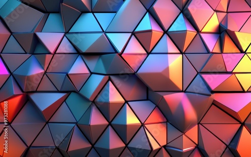 Futuristic, High Tech, colored background, with a triangular block structure. Wall texture with a 3D triangle tile pattern. 3D render