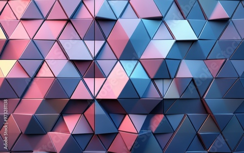 Futuristic, High Tech, colored background, with a triangular block structure. Wall texture with a 3D triangle tile pattern. 3D render