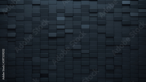 Futuristic, High Tech, dark background, with a rectangular block structure. Wall texture with a 3D rectangle tile pattern. 3D render