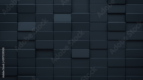 Futuristic, High Tech, dark background, with a rectangular block structure. Wall texture with a 3D rectangle tile pattern. 3D render