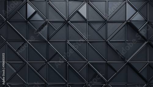 Futuristic, High Tech, dark background, with a triangular block structure. Wall texture with a 3D triangle tile pattern. 3D render