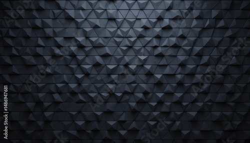 Futuristic High Tech Dark Background with Triangular Block Structure and 3D Tile Pattern Wall Texture