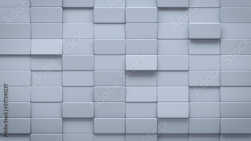 Futuristic, High Tech, light background, with a rectangular block structure. Wall texture with a 3D rectangle tile pattern. 3D render