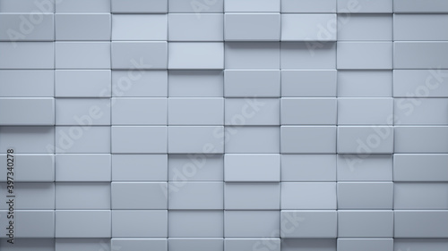 Futuristic, High Tech, light background, with a rectangular block structure. Wall texture with a 3D rectangle tile pattern. 3D render