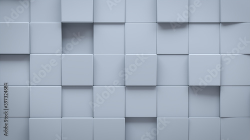 Futuristic, High Tech, light background, with a square block structure. Wall texture with a 3D cube tile pattern. 3D render