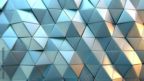 Futuristic, High Tech, light background, with a triangular block structure. Wall texture with a 3D triangle tile pattern. 3D render