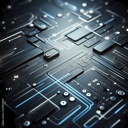Futuristic high technology digital minimalist 3D rendering tech computering abstract background with embedded glowing pattern