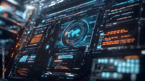 Futuristic Holographic Interface for Advanced Website Optimization Software with Real Time Data