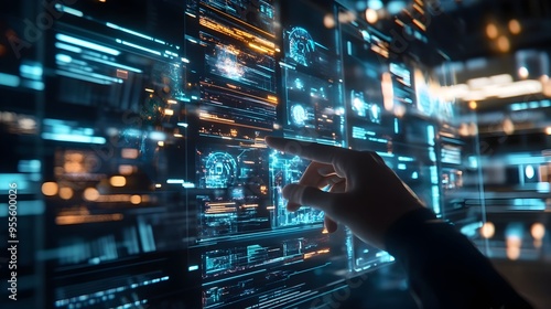 Futuristic Holographic Interface for Cutting Edge Website Optimization Software with Real Time Data
