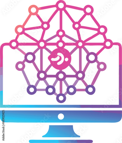 Futuristic holographic neuron network glowing neon on computer screen vector illustration