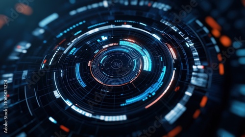 Futuristic HUD interface featuring glowing circles representing a sci-fi technology concept.