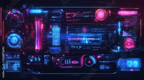 Futuristic HUD Interface Neon Pink & Blue SciFi Digital Dashboard Design