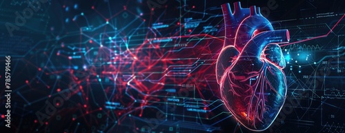 Futuristic human heart with data visualization lines, representation, 3d created with AI