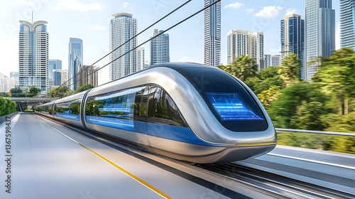 Futuristic Hyperloop Train Powered by Renewables Ultra Modern Zero Emission Public Transport System Featuring Energy Efficient AI Controlled Technology for Sustainable Urban Mobility