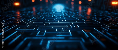 Futuristic illuminated circuit pathway.