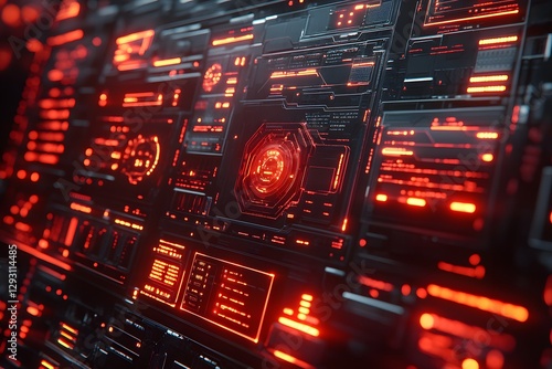 Futuristic Interface Display with Red Neon Cyber Technology for Digital Design